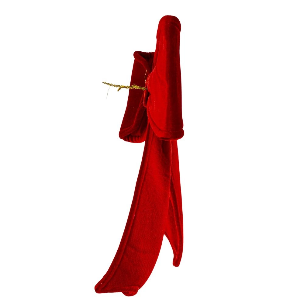 Elegancka, kokarda świąteczna w intensywnym czerwonym kolorze, wykonana z miękkiego, welurowego materiału. Jej klasyczny kształt i głęboki kolor dodają dekoracjom wyjątkowego, świątecznego uroku. Idealnie sprawdzi się jako ozdoba choinki, drzwi, balustrady, prezentu lub świątecznych aranżacji w domu i firmie.