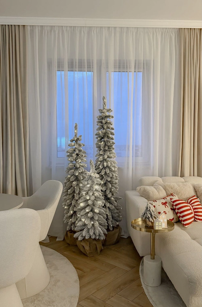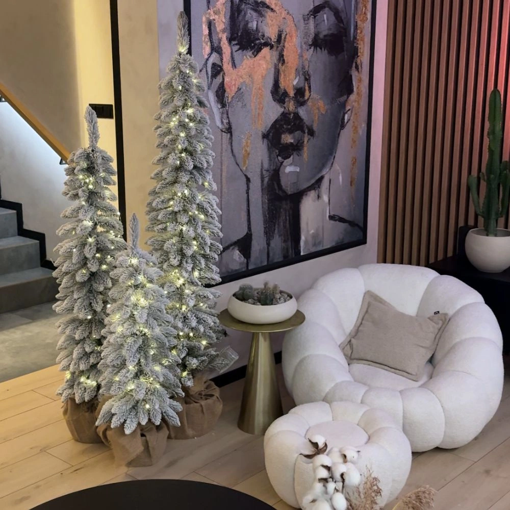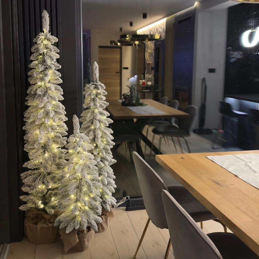 Smukła, gęsta i pokryta śnieżnym puchem – ta choinka to wyjątkowa propozycja dla miłośników zimowego klimatu i estetyki w stylu premium. Jej wąska sylwetka świetnie sprawdza się wszędzie tam, gdzie liczy się przestrzeń.